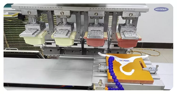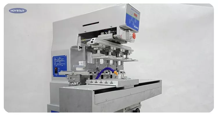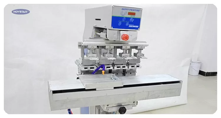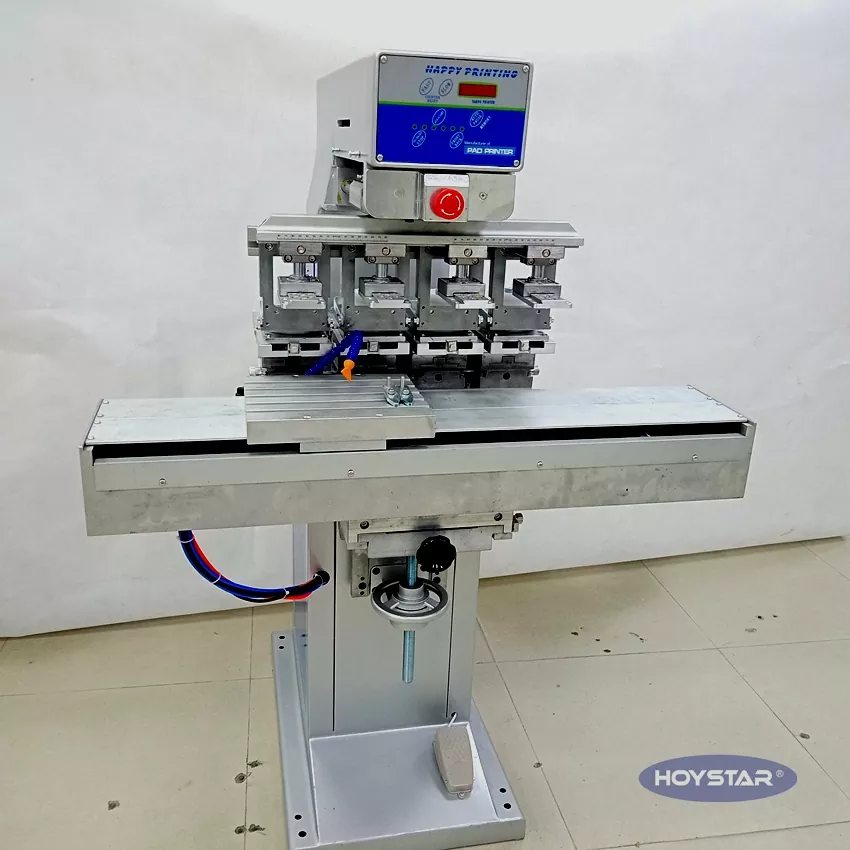 Als professionele fabrikant in China willen wij u een hoogefficiënte HOYSTAR 4-kleurenpadprinter met shuttle-werktafel voor dekking bieden. Onze machines maken gebruik van PLC en touchscreen besturing en zijn geschikt voor het printen van diverse producten. De machine heeft een concurrerende prijs, een kleine voetafdruk en een stabiele afdrukkwaliteit.