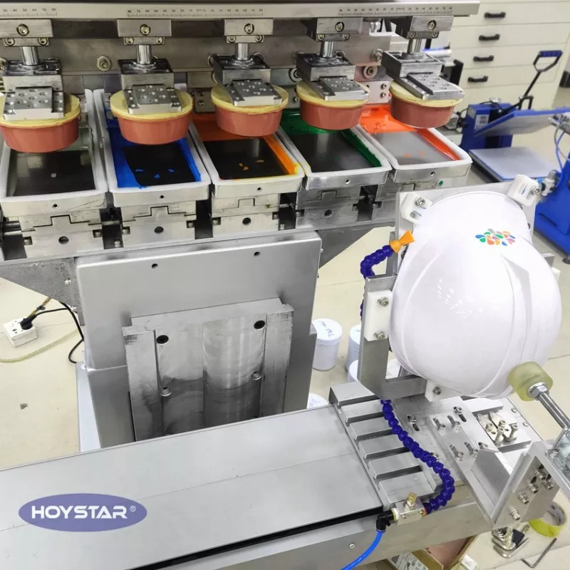 Als de professionele Chinese fabrikant en leverancier, HOYSTAR 6 kleuren veiligheidshelm tampondrukmachine uitgerust met een PLC-aanraakscherm, eenvoudig te bedienen. Deze machine is ontworpen voor het printen op gebogen en onregelmatige oppervlakken zoals helmen. Deze veelzijdige machine is ideaal voor een reeks industrieën, waaronder veiligheids- en beschermingsmiddelen, sportuitrusting, auto-onderdelen, promotieartikelen, elektronische behuizingen en speelgoed. En ze hebben een verstelbare tafelhoogte voor verschillende productafmetingen.