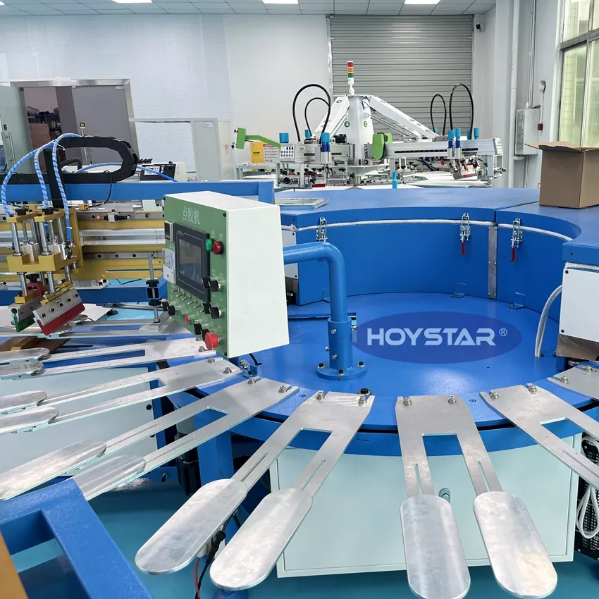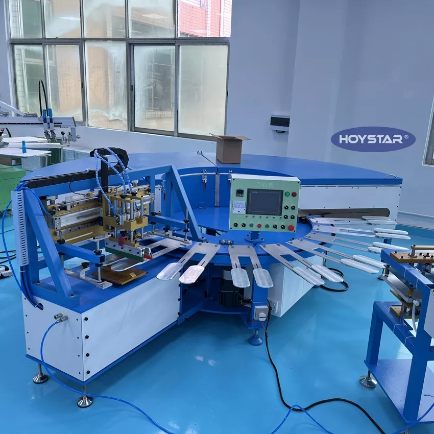 HOYSTAR is een betrouwbare fabrikant en leverancier in China; Deze HOYSTAR High Rapid Anti-slip Sokken Zeefdrukmachine is ontworpen voor toepassingen in de textielbrei-industrie. Met een snelheid tot 800-1000 paar/uur is het geschikt voor het bedrukken van antislipsokken, babysokken, sokken voor volwassenen, voetbalsokken, enz. Uitgerust met een roterende werktafel, is het erg handig om sokken te laden en te lossen. PLC-aanraakschermbediening, zeer eenvoudig te bedienen. Machine uitgerust met een droogsysteem kan het silicium en de inkt goed drogen.