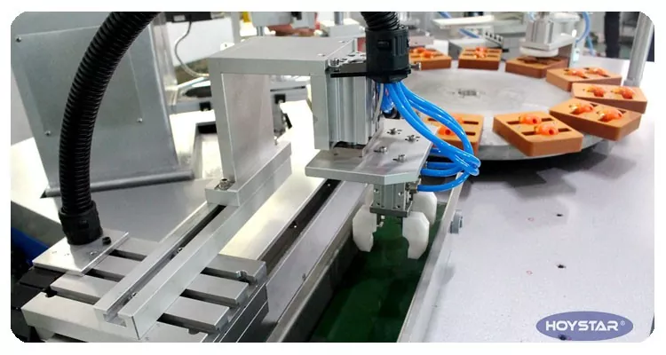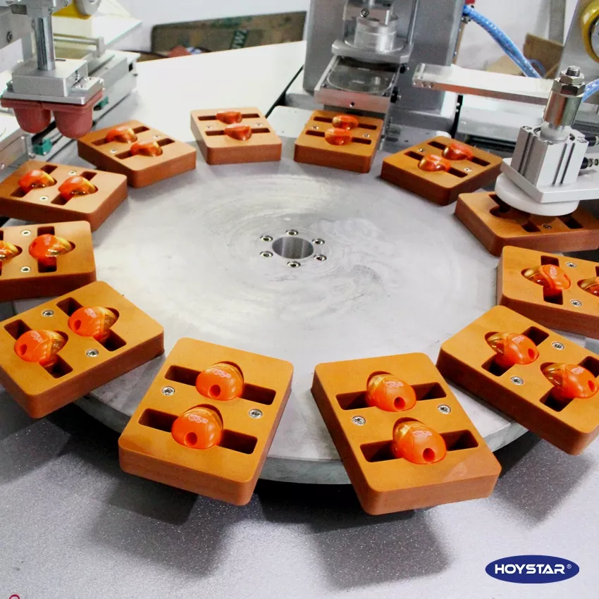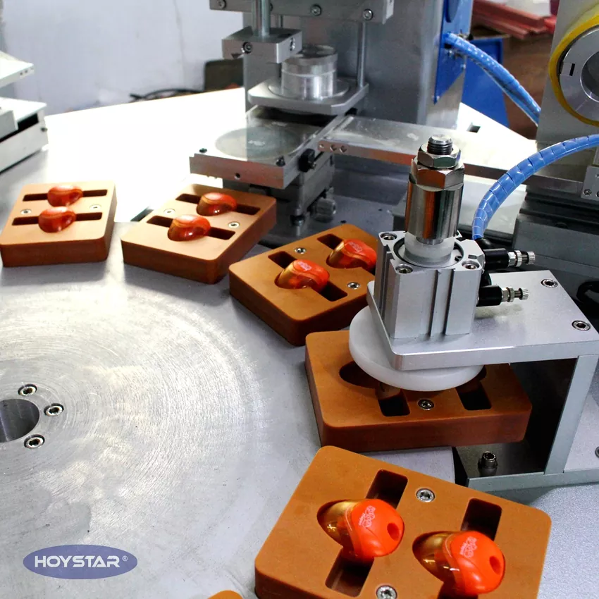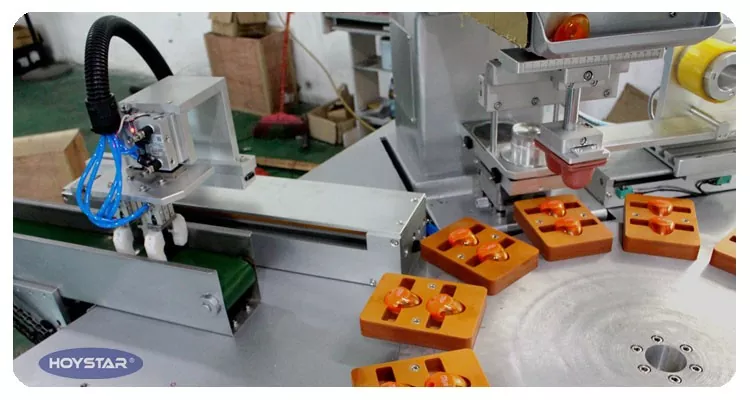 Als professionele fabrikant in China willen wij u graag de krachtige HOYSTAR automatische 2-kleuren padprinter met transportband aanbieden, die speciaal is ontworpen voor het afdrukken van logo's op puntenslijpers, en die ook machines kan aanpassen om af te drukken op aanstekers, gummen, computermuizen, USB-drives, speelgoed, kleine ballen en meer. Deze HOYSTAR automatische 2-kleuren padprinter met transportband is speciaal ontworpen voor het afdrukken op maatclips. Omdat het een niet-standaard, op maat gemaakte machine is, beschikt deze over een semi-automatische cyclus: handmatig laden gevolgd door automatisch afdrukken, automatische tamponreiniging, automatisch drogen en automatisch lossen. , machine uitgerust met PLC en touchscreenbediening voor intuïtieve bediening, elke afdrukvoortgang kan via het touchscreen worden bestuurd.