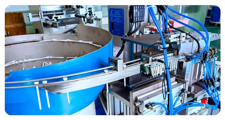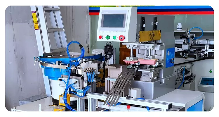 Deze HOYSTAR Automatische 2 Kleuren Golf Tees Tampondrukmachine is speciaal ontworpen voor het bedrukken van maatclips. Omdat het een niet-standaard maatwerkmachine is, beschikt deze over een automatische cyclus: automatisch laden, gevolgd door automatisch printen en automatisch lossen. , machine uitgerust met PLC en touchscreenbediening voor intuïtieve bediening, elke afdrukvoortgang kan via het touchscreen worden bestuurd.
