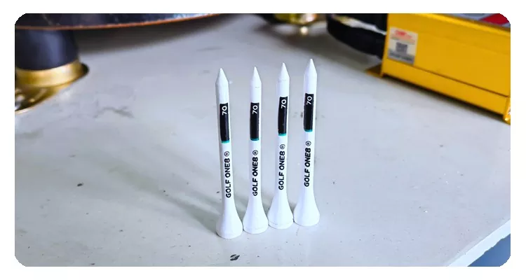 Als professionele fabrikant in China willen wij u graag de krachtige HOYSTAR Automatische 2 Kleuren Golf Tees Tampondrukmachine aanbieden, die speciaal is ontworpen voor het afdrukken van logo's op Golf Teess. Hij kan 4 golf tees in één keer afdrukken en 800-1000 tweekleurig afgewerkte golf tees per uur produceren, waardoor de arbeidsinzet effectief wordt verminderd en de productie-efficiëntie wordt verbeterd.