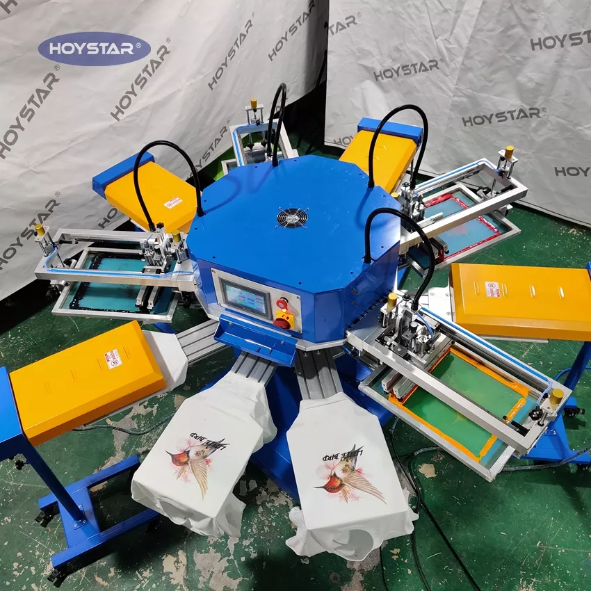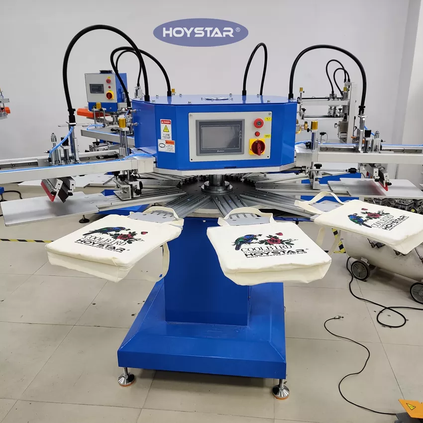Als professionele fabrikant en leverancier is deze HOYSTAR automatische T-shirtzeefdrukmachine met 4 kleurenzakken speciaal ontworpen voor de textielindustrie. Met een indrukwekkende output van maximaal 1200 stuks per uur kunt u uw productie-efficiëntie verhogen. Ontwerp voor het afdrukken van kledinglabels, labels en tassen, kan van armatuur veranderen voor het afdrukken van verschillende soorten producten. De machine is voorzien van een roterende werktafel die snel en gemakkelijk laden en lossen mogelijk maakt, waardoor stilstand wordt geminimaliseerd en de doorvoer wordt gemaximaliseerd.