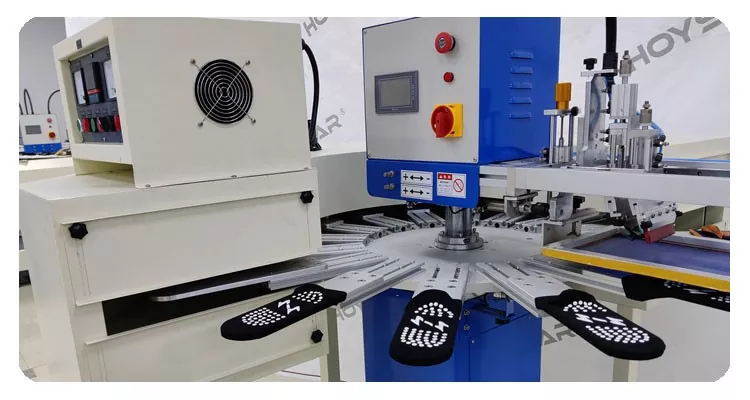 Als professionele fabrikant in China willen wij u graag voorzien van een hoge snelle HOYSTAR grootformaat sokkenzeefdrukmachine. Deze wordt geleverd met een machine met 16 werkstations, geschikt voor de productie van grote volumes. Het beschikt over geavanceerde PLC en touchscreenbediening en kan sokzolen en hakken printen. Een geïntegreerde IR-droogtunnel zorgt voor een effectieve droging van silicium en inkt