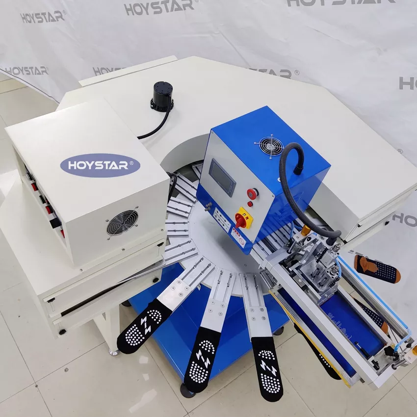 Als professionele fabrikant en leverancier is deze HOYSTAR High Rapid zeefdrukmachine voor grote maten sokken ontworpen voor toepassingen in de textielbrei-industrie. Met een snelheid tot 1200 STKS/uur is het geschikt voor het bedrukken van antislipsokken, babysokken, sokken voor volwassenen, voetbalsokken, enz. Uitgerust met een roterende werktafel en 16 werkstations, is het erg handig om sokken te laden en te lossen. PLC-aanraakschermbediening, zeer eenvoudig te bedienen. Machine uitgerust met een droogsysteem kan het silicium en de inkt goed drogen.