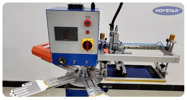 Als professionele fabrikant en leverancier is HOYSTAR High Rapid Antislip Handschoenen Zeefdrukmachine ontworpen voor toepassingen in de textielbrei-industrie. Met een snelheid tot 1000 stuks per uur is het geschikt voor het bedrukken van werkhandschoenen, katoenen handschoenen, gebreide handschoenen, enz. Uitgerust met een roterende werktafel, is het erg handig om handschoenen te laden en te lossen. PLC-aanraakschermbediening, zeer eenvoudig te bedienen. Machine uitgerust met een droogsysteem kan het silicium en de inkt goed drogen.