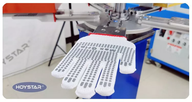 Als professionele fabrikant in China willen wij u graag voorzien van een hoge snelle HOYSTAR antisliphandschoenen zeefdrukmachine. Onze machines maken gebruik van PLC- en touchscreenbediening en worden voornamelijk gebruikt voor het bedrukken van verschillende soorten handschoenen. De machine kan afdrukken op katoenen handschoenen, gebreide handschoenen, enz. Machine voorzien van droogoven die het silicium en de inkt goed kan drogen.
