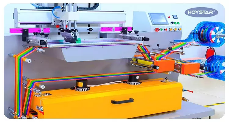 Als professionele fabrikant in China willen wij u een hoogefficiënte HOYSTAR Roll-to-Roll-zeefdrukmachine bieden. Onze machines maken gebruik van PLC en touchscreen besturing en worden voornamelijk ingezet voor het bedrukken van diverse soorten linten. Ze bieden een dubbele haspelmodus om stabieler te printen en oprollen te garanderen, en het zeefframe is veerbelast, waardoor het geschikt is voor printen met verschillende soorten inkt.