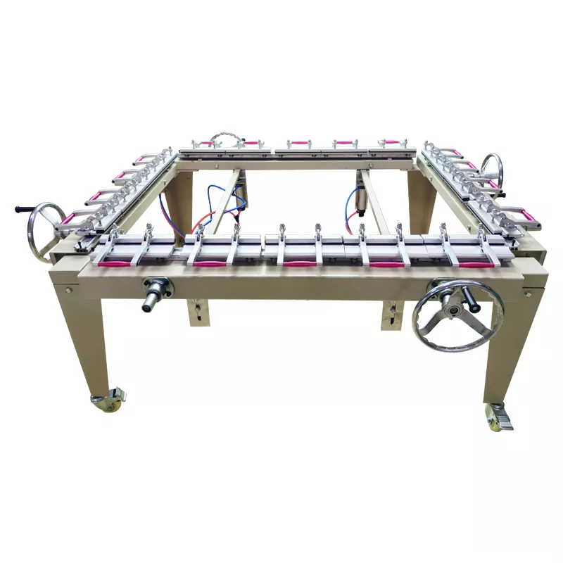 De zeefframe-oprekmachine wordt gebruikt om het scherm gelijkmatig en strak op een aluminium of houten frame te spannen, waardoor een consistente zeefspanning wordt gegarandeerd - dit is een sleutelfactor voor het bereiken van een gelijkmatige inktafdruk tijdens het drukproces.