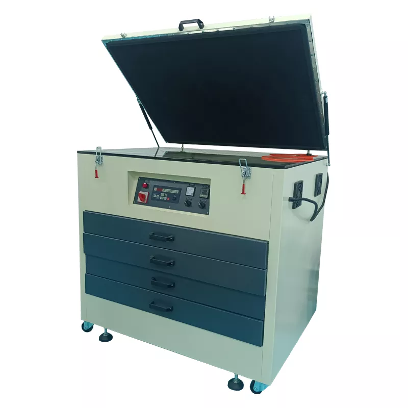 UV-belichtingsmachine is een belangrijke uitrusting voor het overbrengen van patronen op het schermframe. Ze gebruiken ultraviolette straling om de lichtgevoelige emulsie op het schermframe uit te harden en creëren nauwkeurige sjabloonpatronen op basis van de ontwerptekeningen.