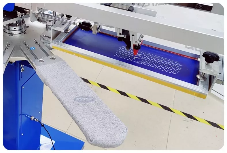 Als professionele fabrikant in China willen wij u graag voorzien van een zeer snelle HOYSTAR-zeefdrukmachine voor sokken. Onze machines maken gebruik van PLC- en touchscreenbediening en worden voornamelijk gebruikt voor het bedrukken van verschillende soorten sokken. De machine kan op de zolen en hielen van de sokken printen en is voorzien van een droogoven die de siliconen en inkt goed kan drogen.